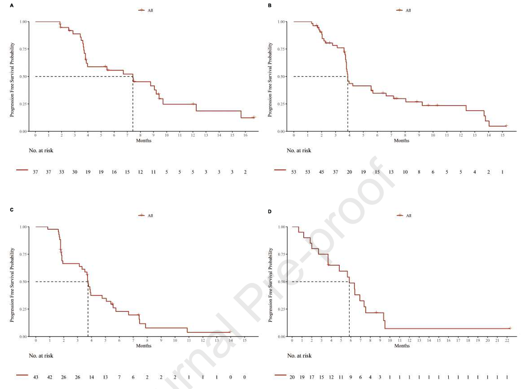 图4.9MW2821在1.25 mg/kg剂量组的PFS:(A)UC(B)CC(C)EC(D)TNBC